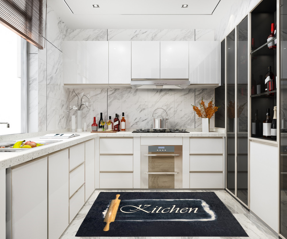 Kuchynský koberec 2032 čierny vzorovaný 70x200 cm