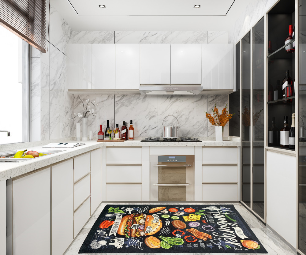Kuchynský koberec 47410 čierny vzorovaný 60x180 cm