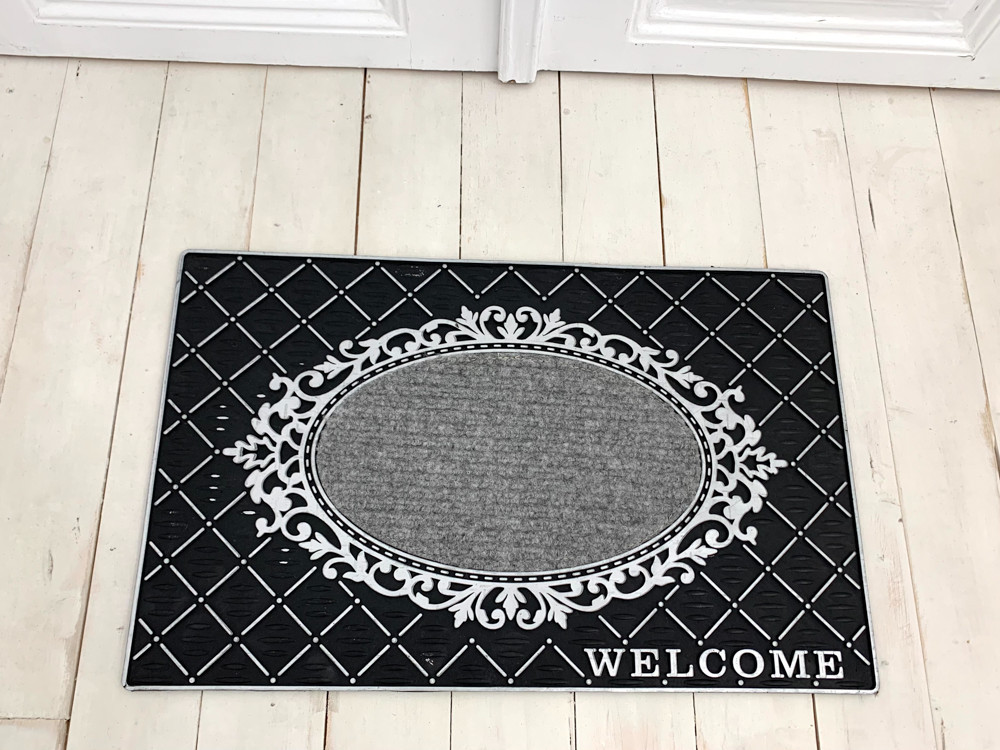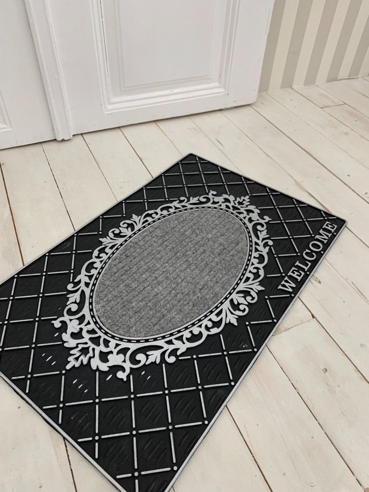 Loft Design Welcome antracitová oválna pogumovaná rohožka 45x75cm