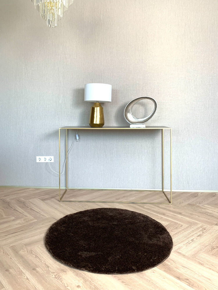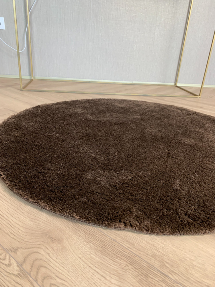 Stockholm mäkký okrúhly hnedý shaggy koberec 100x100